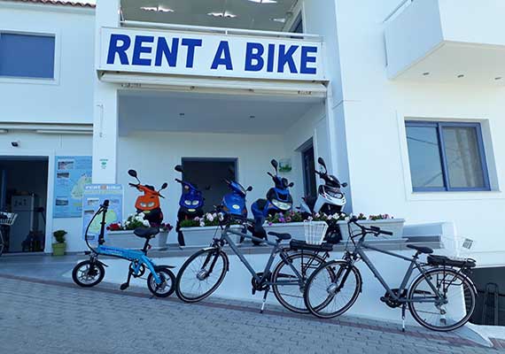Ακολουθώντας την νέα κουλτούρα και πραγματικότητα των νέων μορφών μετακίνησης, για να μεταβούμε σε ένα νέο, πιο σύγχρονο και υγιεινό τρόπο ζωής, φέραμε και διαθέτουμε προς ενοικίαση καινούργια ηλεκτρικά ποδήλατα & πατίνια, προκειμένου να εξερευνήσετε το νησί και να βρεθείτε σε λίγο χρόνο στις πιο απομακρυσμένες μαγευτικές παραλίες του.