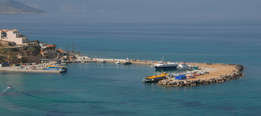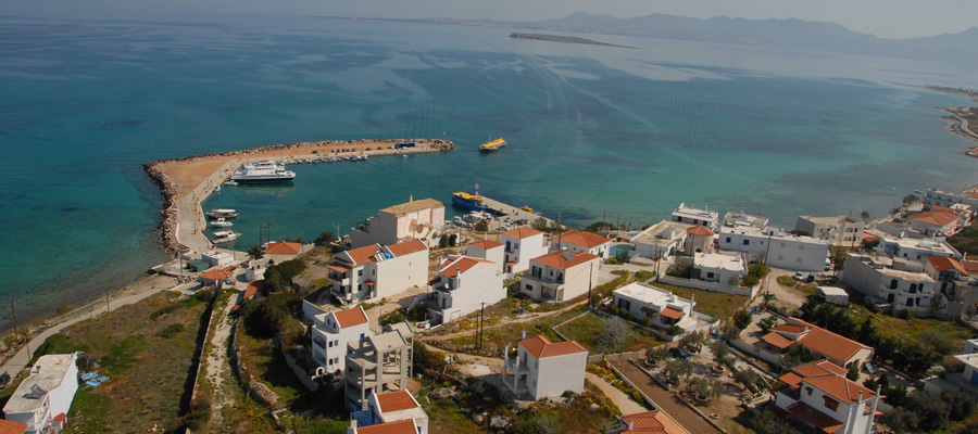 Διαθέτει φυσικό λιμάνι, στο οποίο αράζουν τα flying dolphin που έρχονται από τον Πειραιά. και μαρίνα ελλιμενισμού, ανεφοδιασμού για τα πλοία. Καταγάλανα κρυστάλλινα νερά ανάμεσα σε φυσικούς κόλπους που δημιουργούν αμμώδεις περιοχές.
