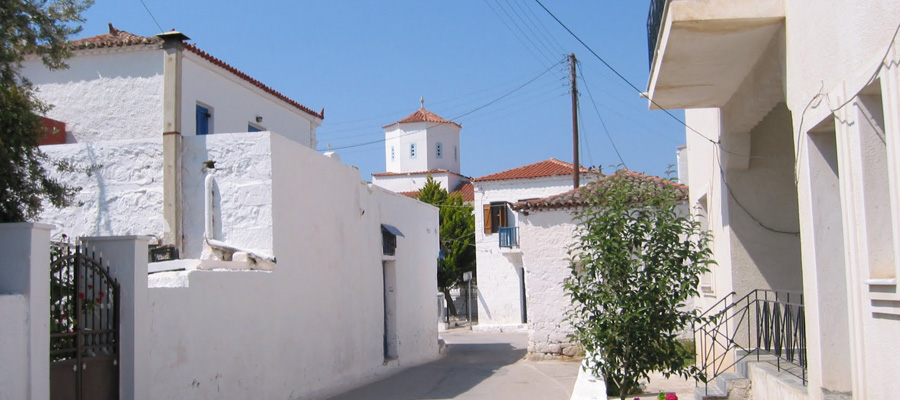 Αφήνοντας το Μεγαλοχώρι και κατευθυνόμενος κανείς προς το πευκόφυτο δάσος συναντάει το εκκλησάκι των Αγίων Αποστόλων. Πρόκειται για ένα από τα παλαιότερα εκκλησάκια του νησιού που στέκει εκεί μέσα στο πέρασμα των χρόνων και καλούν τον επισκέπτη να γνωρίσει τις ρίζες του νησιού, το Καντούντι, το παλιό χωριό του Αγκιστρίου, δηλαδή ότι έχει μείνει από τον παλαιότερο οικισμό του Αγκιστρίου. |