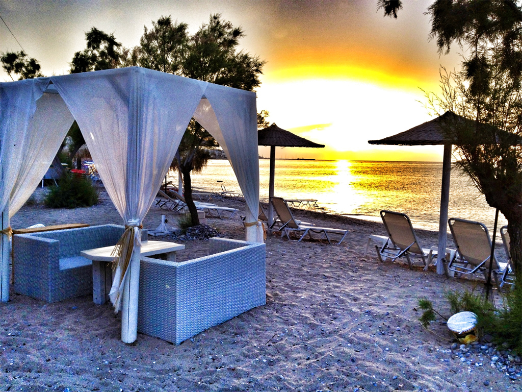 Σε ένα ειδυλλιακό, πολυτελές, καλοκαιρινό περιβάλλον, με ξαπλώστρες, στρώματα, ομπρέλες και τραπεζάκια στην αμμουδιά, πάνω στη θάλασσα, κολυμπήστε, διασκεδάστε και χαρείτε, ενώ ταυτόχρονα θα απολαμβάνετε φρέσκους φυσικούς φρουτοχυμούς, όλα τα είδη των καφέδων, εξωτικά coctails, ποτά, ούζο, μπύρες, όλα τα είδη κρασιών, θαυμάσια snacks και γευστικότατα επιδόρπια.