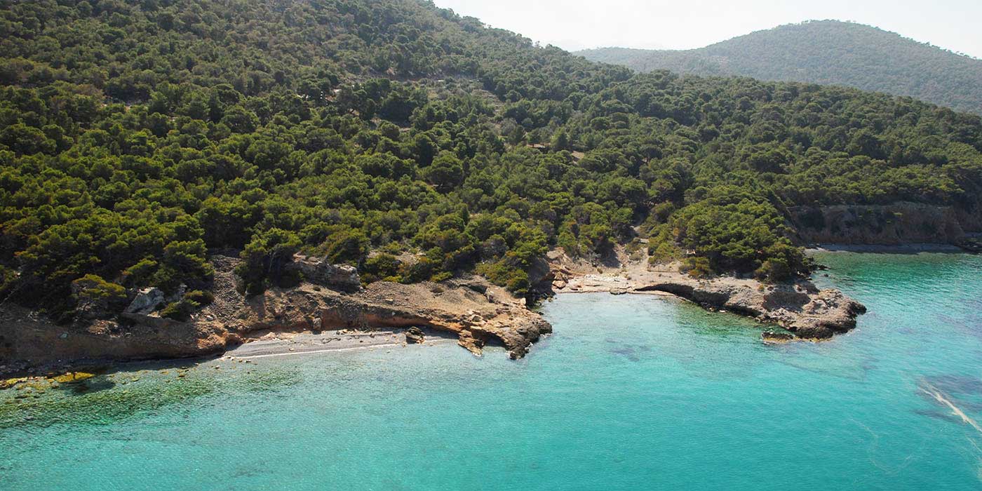 Agistri is only 55 minutes from Piraeus and at a stone's throw from the island of Aegina. It is a small heaven on earth situated at the Saronic Gulf, smothered in plants and trees, with pine trees "touching" its crystal blue waters.